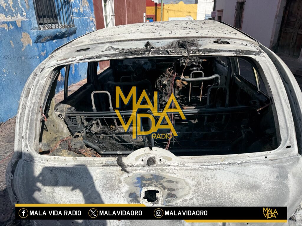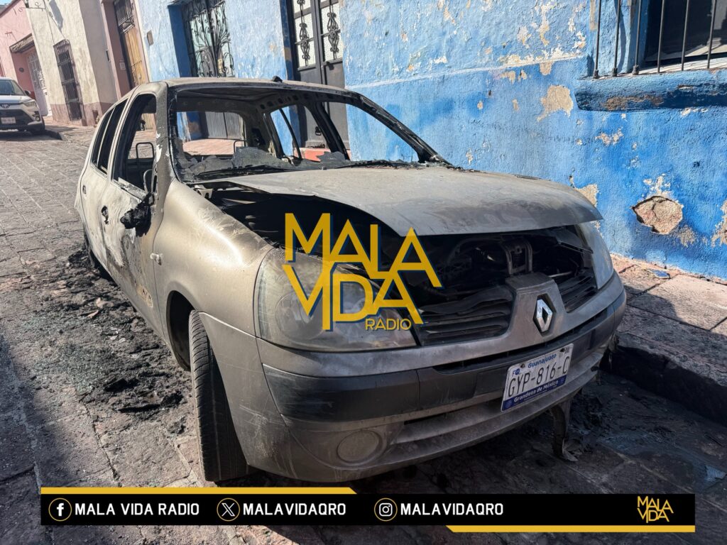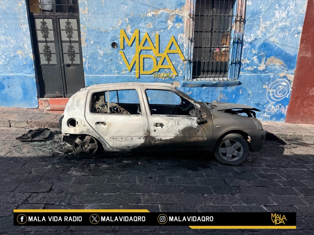 Querétaro, Qro.. 16 de enero de 2026. Esta mañana de viernes, un sujeto fue detenido tras provocar el incendio de un vehículo que se encontraba estacionado en la calle Felipe Luna casi esquina con 16 de Septiembre, en pleno Centro Histórico de la capital queretana.