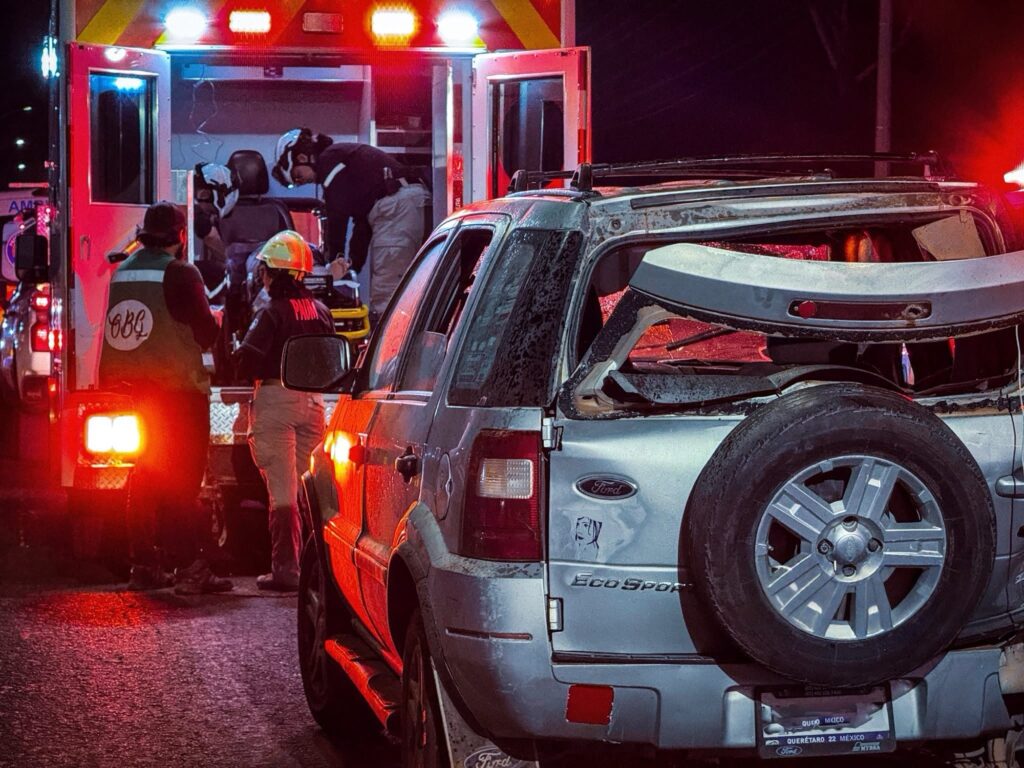 El Marqués, Qro., 16 de enero de 2026. La noche de este viernes se registró un fatal accidente vehicular tipo volcadura, el cual dejó como resultado una persona muerta y dos más lesionadas, una de ellas de gravedad.