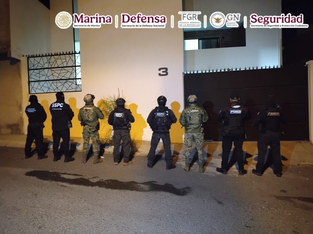 Dichas diligencias se ejecutaron de manera quirúrgica sin que se registrara un solo disparo, y en ellas intervinieron personal de la Secretaría de Marina, Fiscalía General de la República, Fiscalía General del Estado y de la Secretaría de Seguridad y Protección Ciudadana Federal y Policías Estatales.
