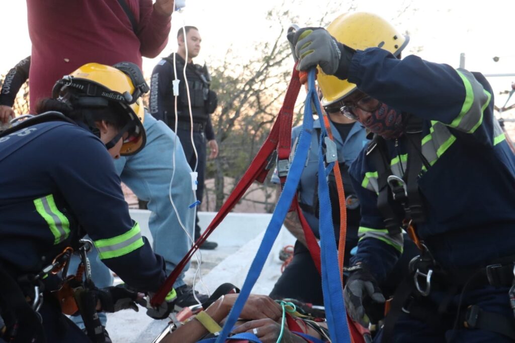 En el lugar el lesionado fue estabilizado por paramédicos y posteriormente con apoyo de equipo especializado los bomberos realizaron el descenso del hombre para que finalmente fuera trasladado al hospital para que recibiera atención médica especializada.