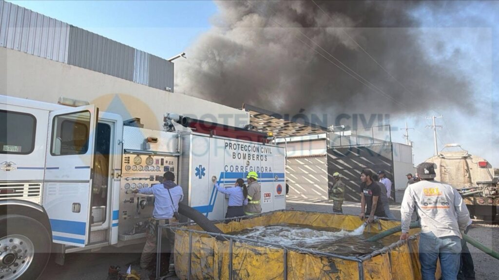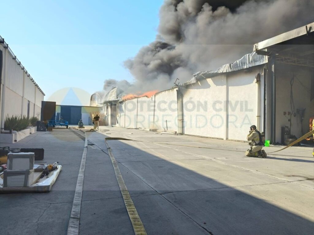 Corregidora, Qro., 17 de febrero de 2026. Esta tarde de martes, se registró un fuerte incendio al interior de una fábrica ubicada en la colonia Valle Dorado 2000, en el municipio de Corregidora, el cual por fortuna sólo dejó daños materiales.