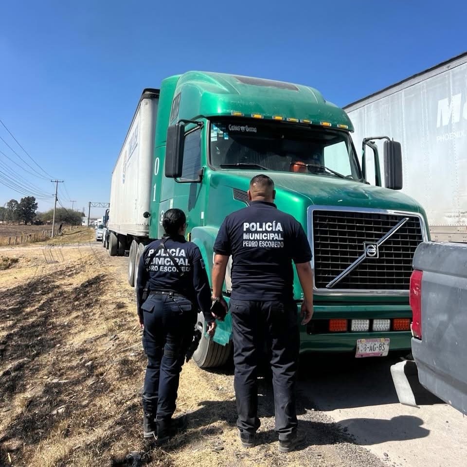 Pedro Escobedo, Qro., 18 de febrero de 2026. Policías del municipio de Pedro Escobedo, tomaron conocimiento de un presunto intento de privación ilegal de la libertad y aseguraron un tractocamión.