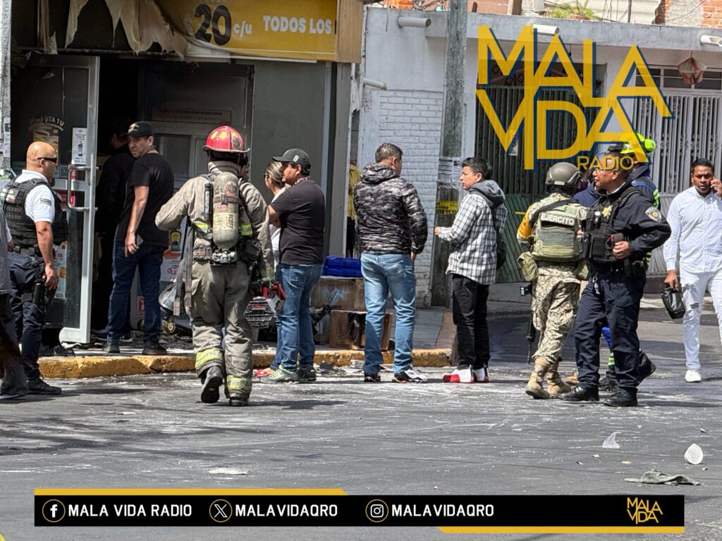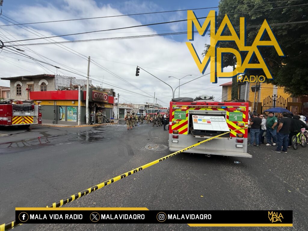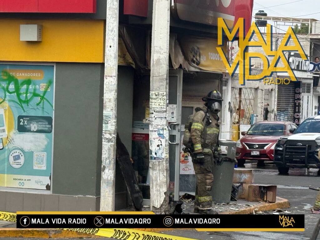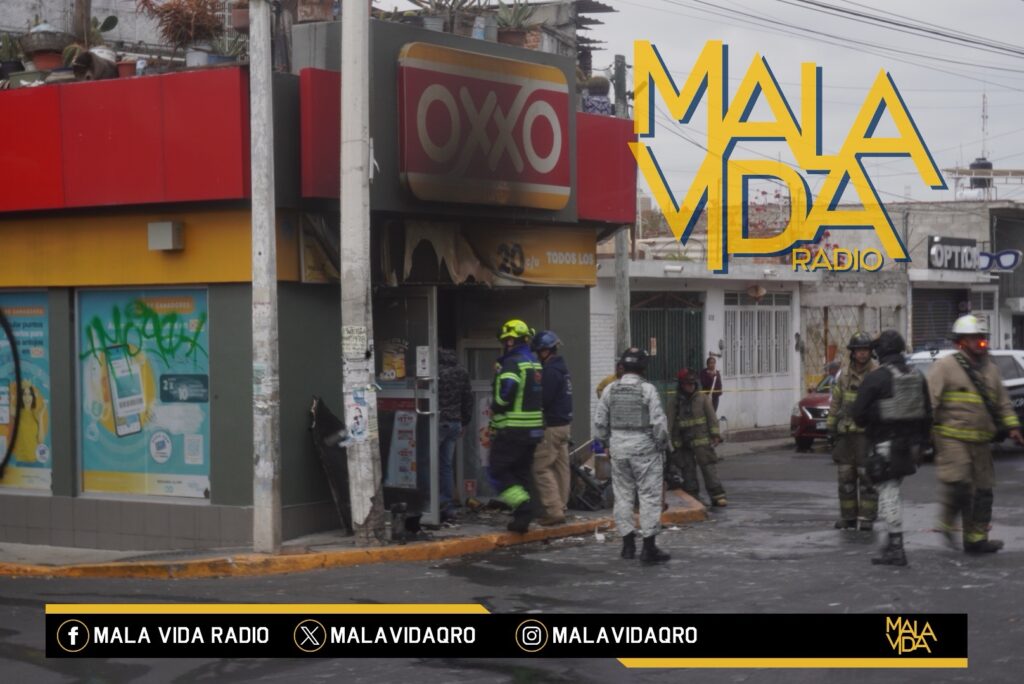 Querétaro, Qro., a 22 de febrero del 2026. Esta tarde de domingo sujetos a bordo de una motocicleta presuntamente habrían incendiado una tienda de autoservicio “Oxxo” ubicada en Avenida Cimatario y su cruce con la calle Nevado de Toluca en la colonia Las Palmas, municipio de Querétaro.