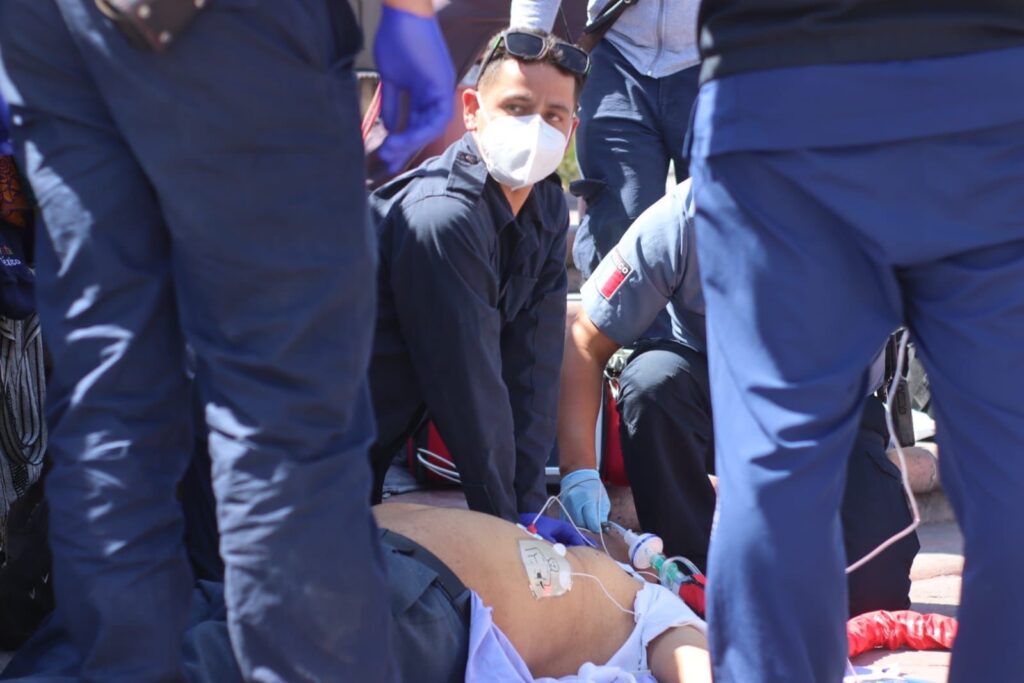 De manera inmediata fueron canalizado al sitio paramédicos del Cuerpo de Bomberos de Querétaro, así como del Centro Regulador de Urgencias Médicas (CRUM) y de Protección Civil, quienes al arribar al lugar tomaron conocimiento de un hombre inconsciente, mismo al que ciudadanos se encontraban realizándole maniobras de Reanimación Cardiopulmonar (RCP).