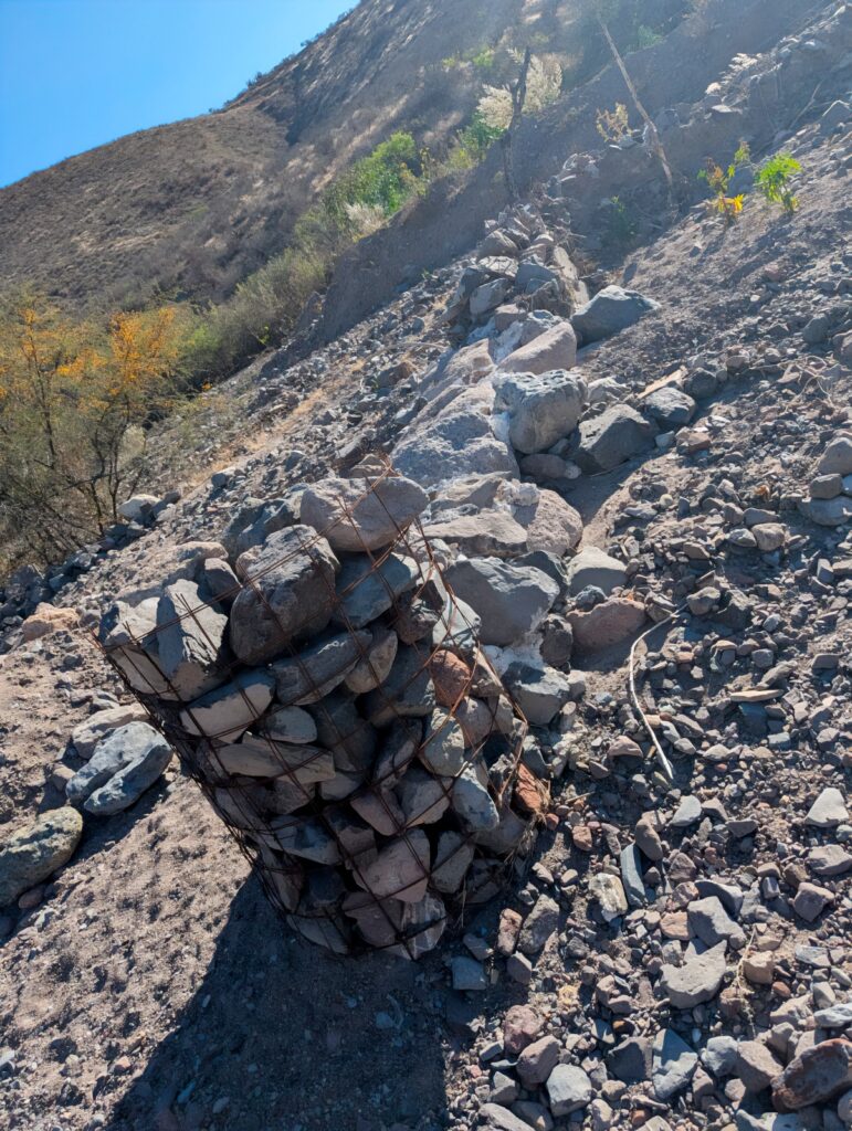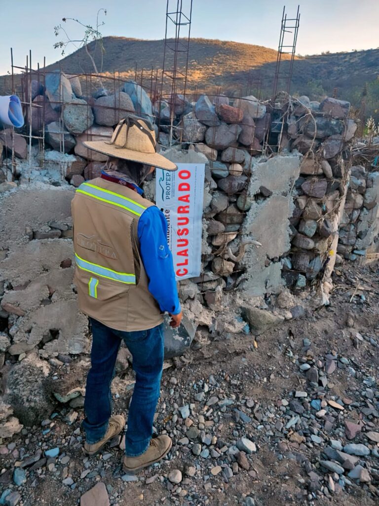 En esa misma fecha, se detectó una obra civil en el cauce del arroyo “La Picuda”, en la comunidad de Agua Fría, municipio de Peñamiller, consistente en ocho gaviones (estructuras metálicas) construidos para desviar el cauce del arroyo. La intervención provocó exposición de raíces de mezquite y condiciones de estrés hídrico en la zona. Al no contar con autorización en materia de impacto ambiental emitida por la Secretaría de Medio Ambiente y Recursos Naturales (Semarnat), se ordenó la clausura de las obras.