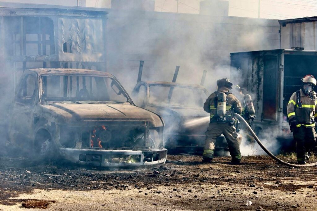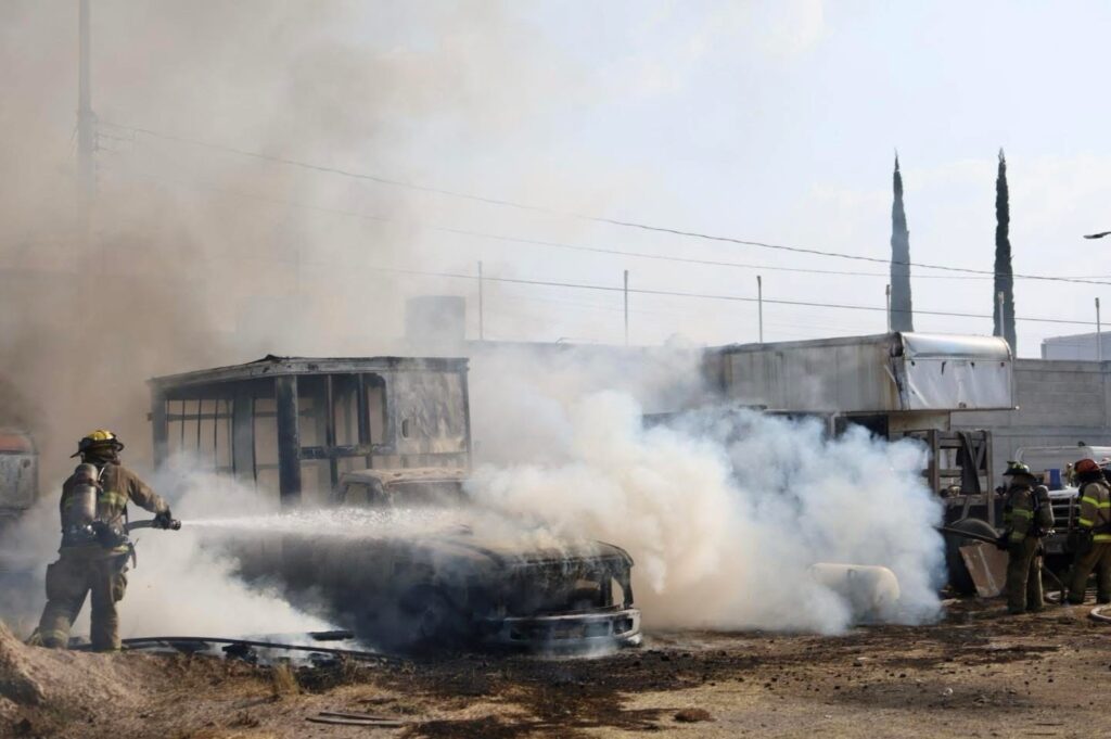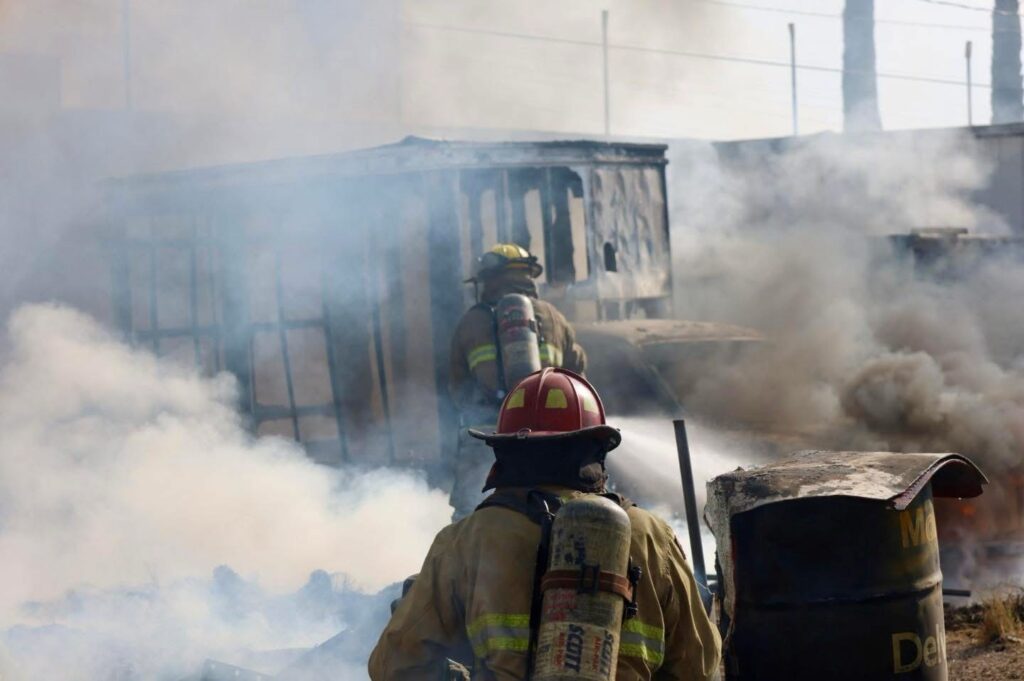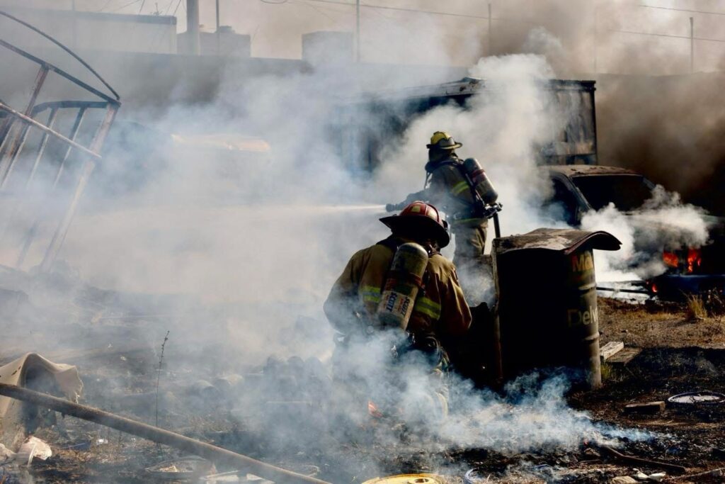 Querétaro, Qro., a 09 de marzo del 2026. Está tarde se registró un fuerte incendio en un patio de maniobras ubicado en la colonia Colinas de San Pablo, en la zona norponiente de la capital queretana.