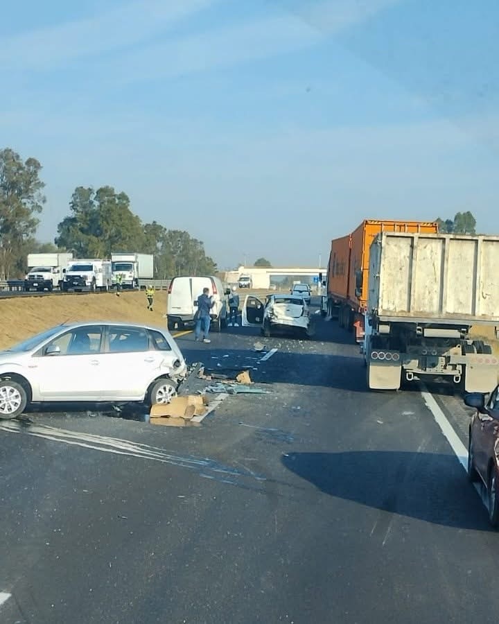 Querétaro, Qro., a 10 de marzo del 2026. Esta mañana de martes se registró una aparatoso accidente vehicular tipo choque múltiple sobre los carriles del Libramiento Noreste (Chichimequillas) a tres de la comunidad de Los Encinos, en el municipio de El Marqués.