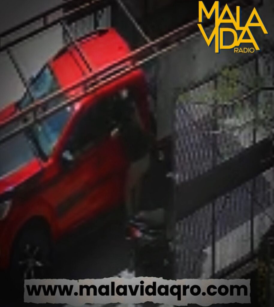 El video fue captado por una cámara de vigilancia y en la grabación se puede ver como un sujeto a bordo de una motocicleta se acerca a una camioneta que se encontraba estacionada en la zona de estacionamiento de una ferretería ubicada a un costado de Paseo 5 de Febrero a la altura de Jurica, y extrae una mochila.