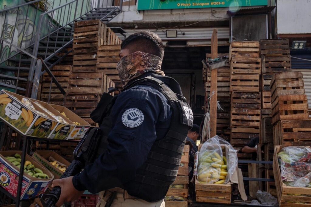Querétaro, Qro., a 12 de marzo del 2026. La Fiscalía General del Estado (FGE), ejecutó cinco diligencias de cateo en distintos puntos de la capital del estado, tres de ellas en bodegas ubicadas en la zona de la Central de Abastos, en la colonia Plazas del Sol, una más en un domicilio de la colonia Vista Alegre y otro en la colonia Lázaro Cardenas.