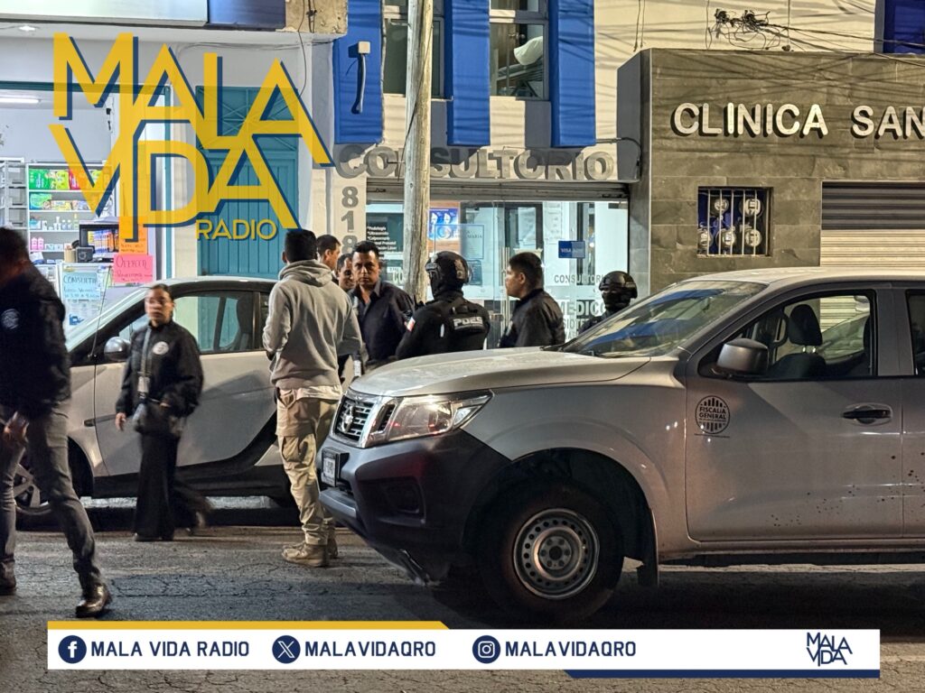 Querétaro, Qro., a 18 de marzo del 2026. Esta tarde noche de miércoles, elementos de la Policía de Investigación del Delito de la Fiscalía General del Estado (FGE), realizaron diligencias de cateo al interior de una clínica privada ubicada a un costado de Avenida Pasteur Sur a la altura de la colonia Azteca.
