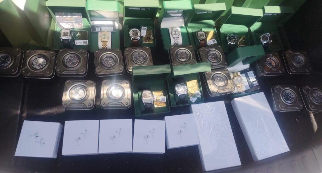 Al ser detenido y al intentar realizarle una inspección preventiva, el conductor de la camioneta adoptó una actitud agresiva en contra de los policías, por lo que utilizando los protocolos de actuación policial y el uso adecuado de la fuerza, el presunto responsable fue detenido, asimismo al interior de la unidad los elementos de seguridad pública localizaron diversos relojes, audífonos y otros objetos presuntamente utilizados por el imputado para cometer ilícitos.