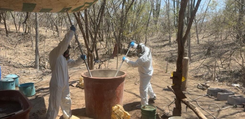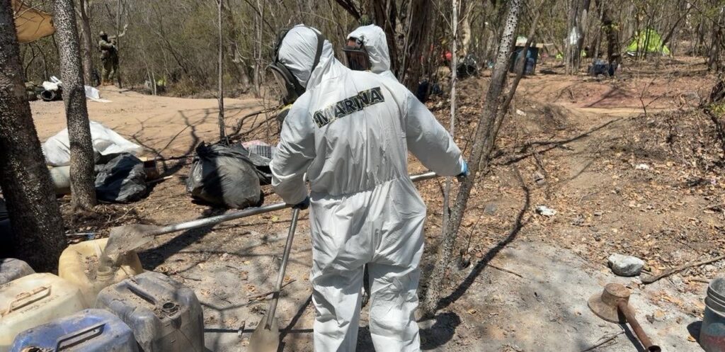 Topolobampo, Sin., a 29 de marzo del 2026. Autoridades federales encabezadas por la Secretaría de Marina (SEMAR), localizaron y neutralizaron un Laboratorio Clandestino dedicado a la producción de metanfetamina, en inmediaciones del poblado Las Juntas, municipio de Mocorito, Sinaloa.