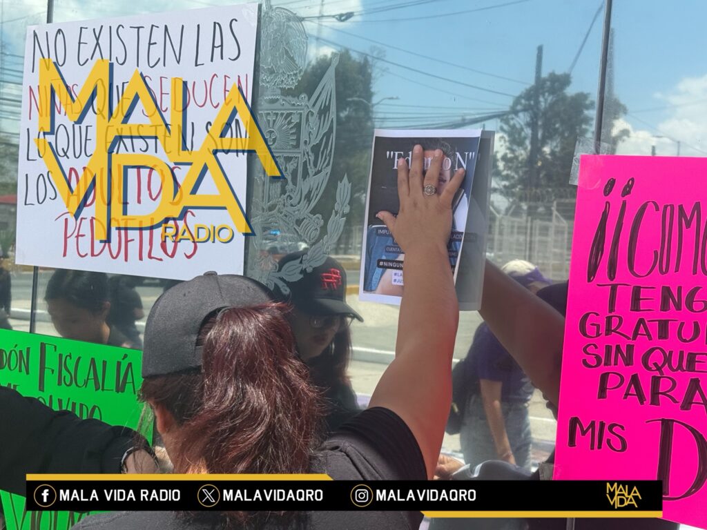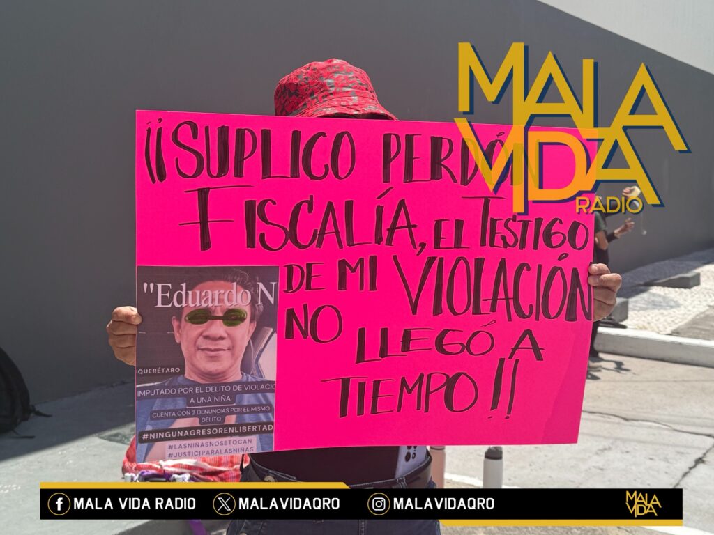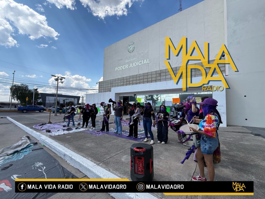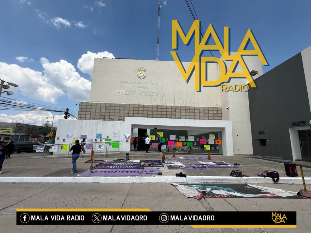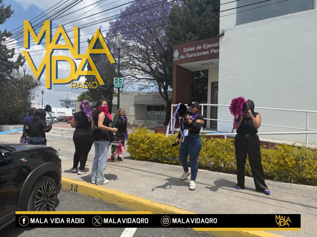 Querétaro, Qro., a 31 de marzo del 2026. Este medio día familiares, amigos y representantes de diversas colectivas feministas, se manifestaron a las afueras de las Salas de Audiencias Penales del Poder Judicial exigiendo justicia para la menor Dalia “N” presunta víctima de abuso sexual.