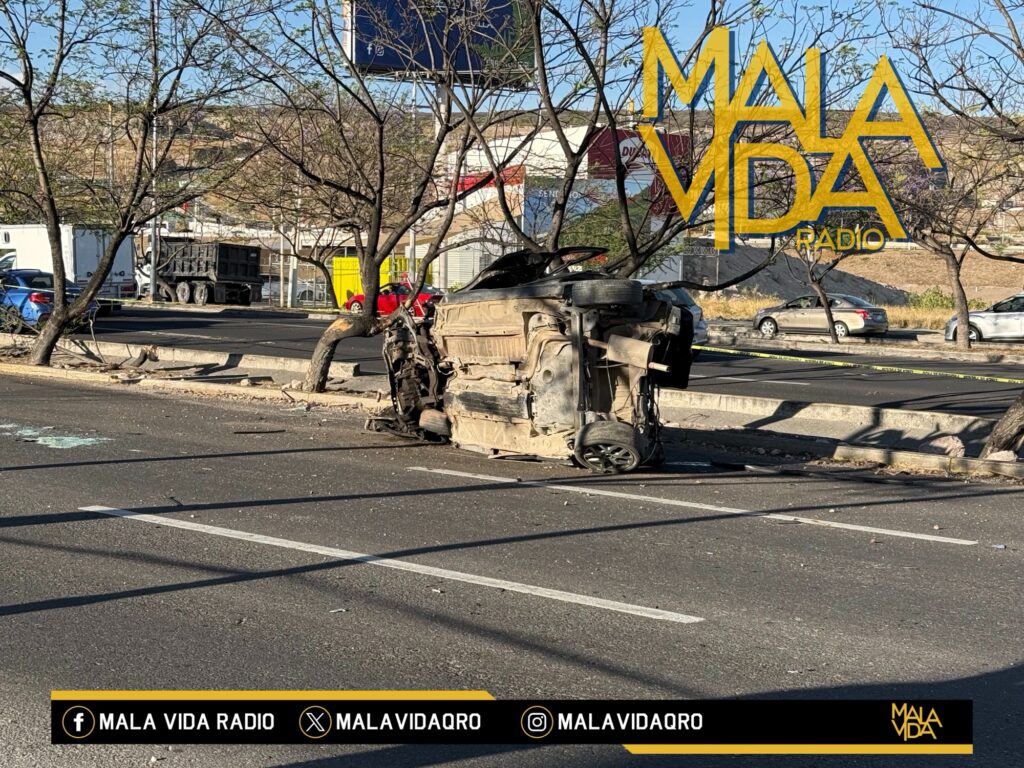 Querétaro, Qro., a 08 de abril del 2026. Fatal accidente vehicular se registró esta tarde sobre los carriles centrales de Paseo de la República a la altura de Jurica en dirección a la CDMX, en donde una persona perdió la vida y una más resultó gravemente lesionada y traslada al hospital en calidad de grave.