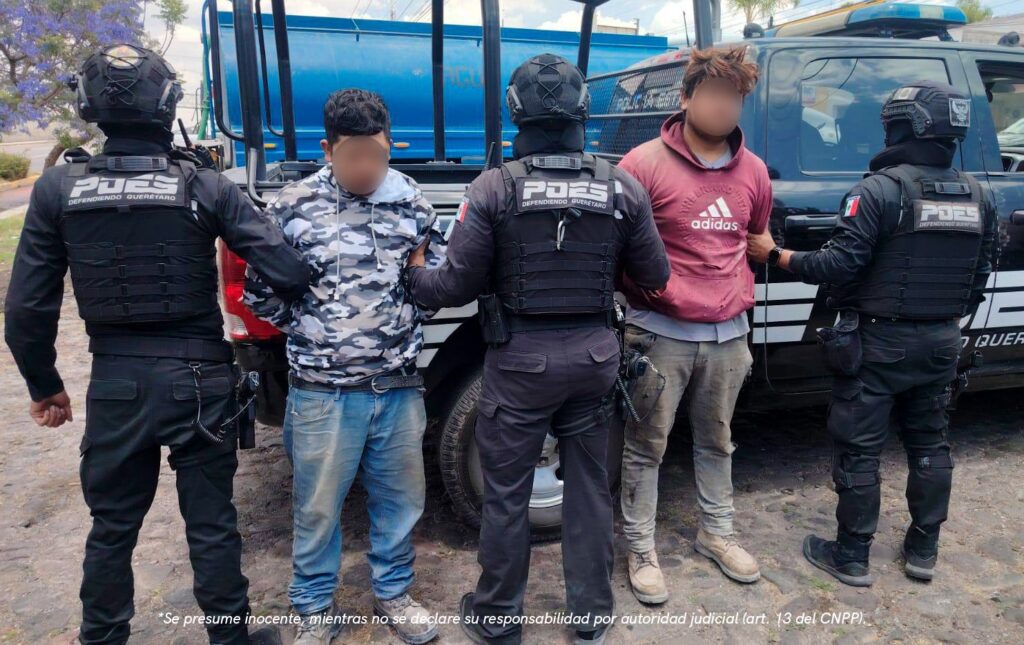 Querétaro, Qro., a 10 de abril del 2026. Dos sujetos fueron detenidos tras presuntamente agredir y lesionar con un arma de fuego a un hombre en las inmediaciones de la comunidad de San José Buenavista en la delegación Santa Rosa Jáuregui.