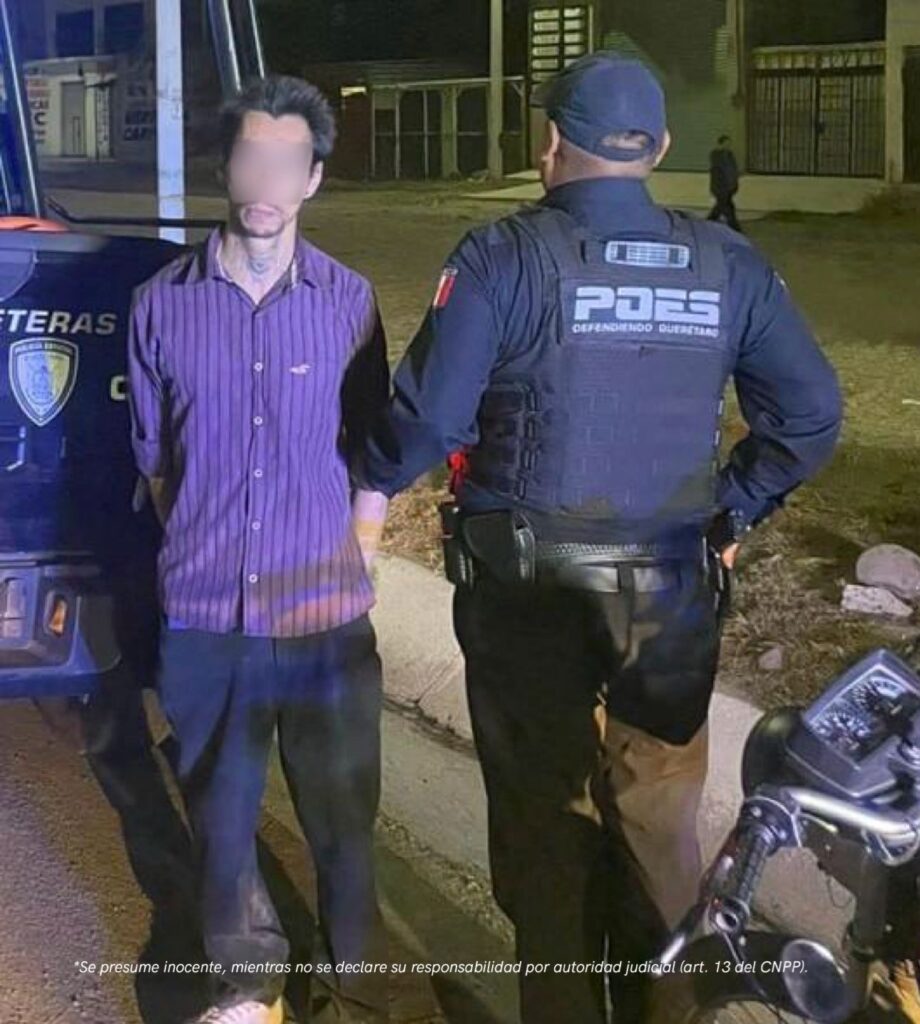 Corregidora, Qro., a 11 de abril del 2026. Elementos de la Policía Estatal (PoEs), aseguraron a un sujeto quien cuenta con una orden de aprehensión vigente por violencia familiar.