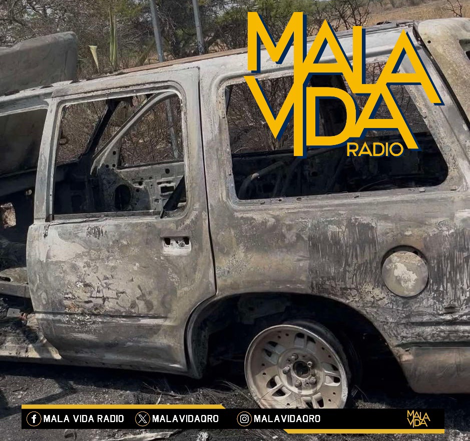 Querétaro, Qro., a 18 de abril del 2026. Esta tarde de sábado, una camioneta terminó totalmente calcinada cuando circulaba por el camino a la comunidad de La Tinaja de la Estancia en el municipio de Querétaro, por suerte solo se reportaron daños materiales.