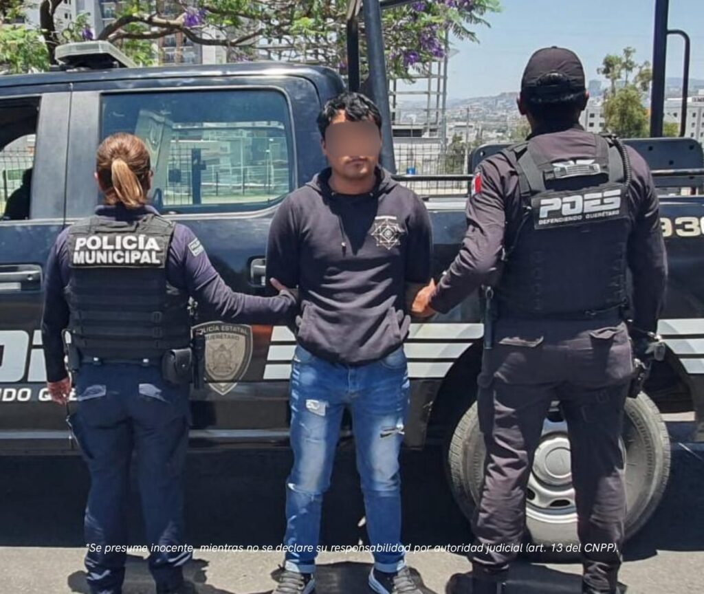 Querétaro, Qro., a 27 de abril del 2026. Elementos de la Policía Estatal (PoE), detuvieron a un sujeto y aseguraron una importante cantidad de sustancias tóxicas, el hecho ocurrió sobre la Avenida Cimatario a la altura de la colonia El Marqués.